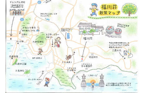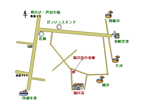 錦浜方面へ道なりに進むと福川荘の看板があります。